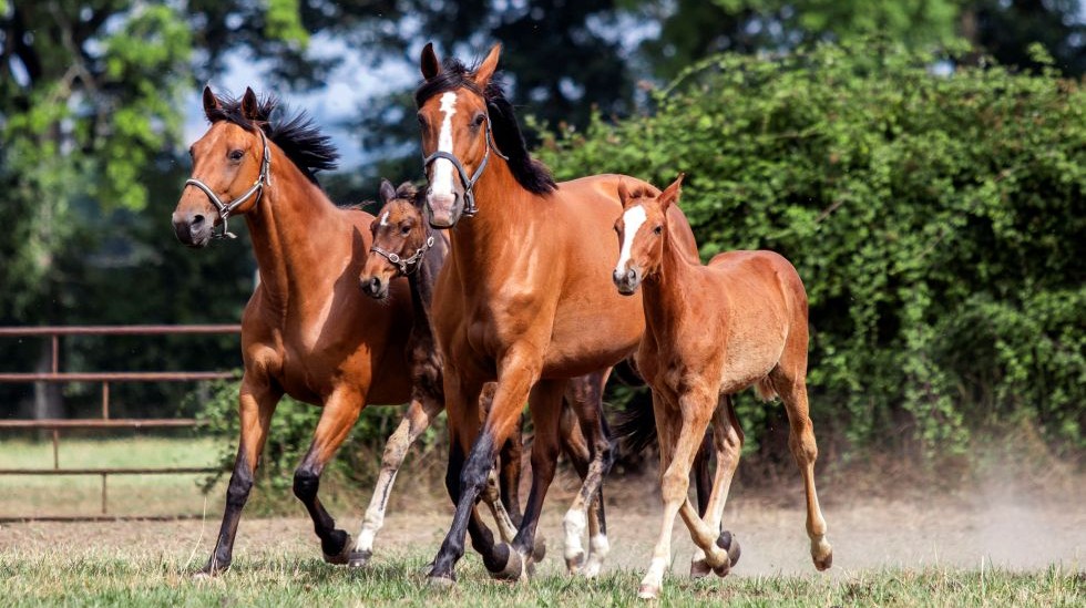 Orenda (Follow You) et Oriana de Joudes (Italiano Vero) au haras d'Atalante avec une compagne d'élevage